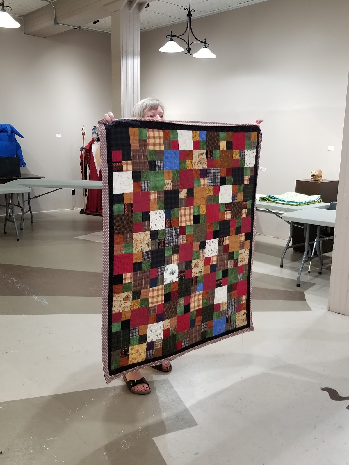 | Lori is hiding behind this cute quilt. |